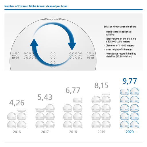 QleanAir delivered cleaned indoor air corresponding to 9,77 Ericsson Globe Arenas per hour at the end of 2020